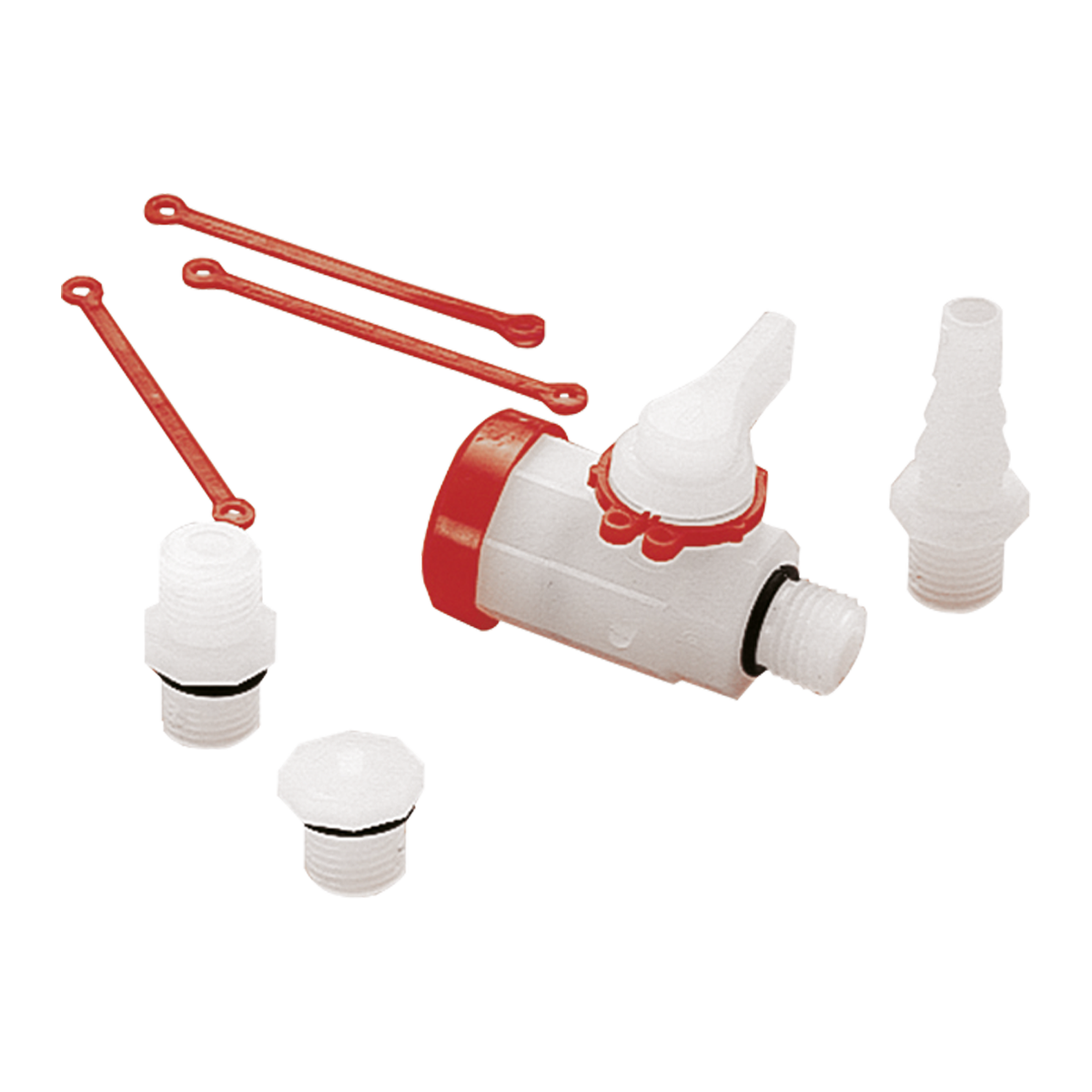 Кран для отбора проб DN6 PVDF натур., внутренняя-наружная резьба 1/4" - 1/4" NPT PN10 FPM PTFE с принадлежностями